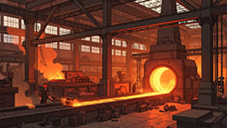 The steel flows in cryptic paths—align the vats correctly, or the furnace will seal its secrets forever.