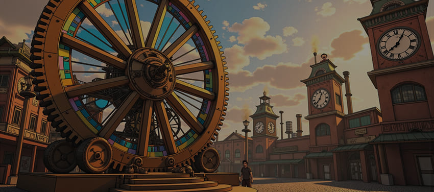 The clocktower's gears don't track hours—they count down to an unknown collapse. Manipulate its mechanisms to unlock temporal shortcuts through the decaying metropolis.